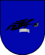 Escudo de Armas del Apellido Juliá: En campo de azur un ave volando, sosteniendo de una garra una piedra, y de otra una cinta de plata con la inscripción IBIS.